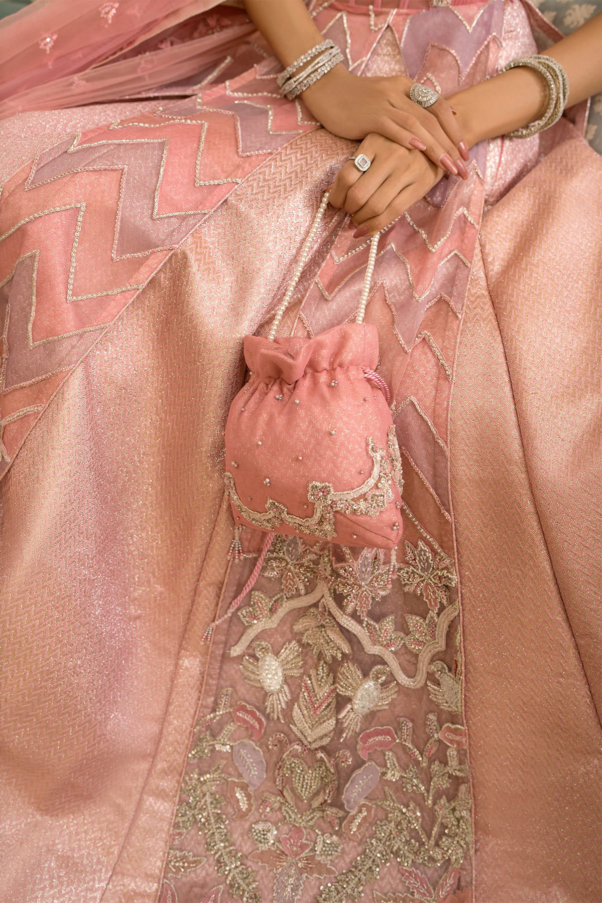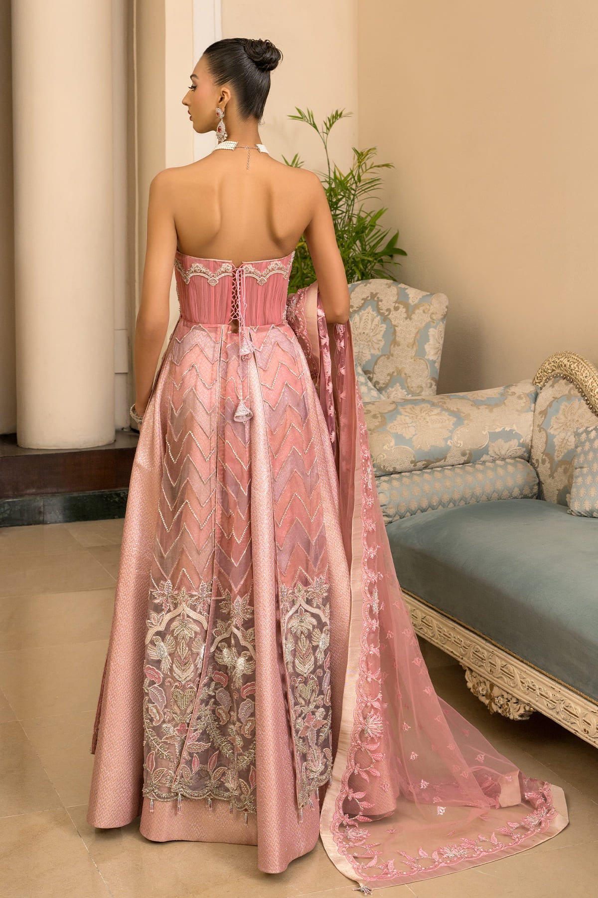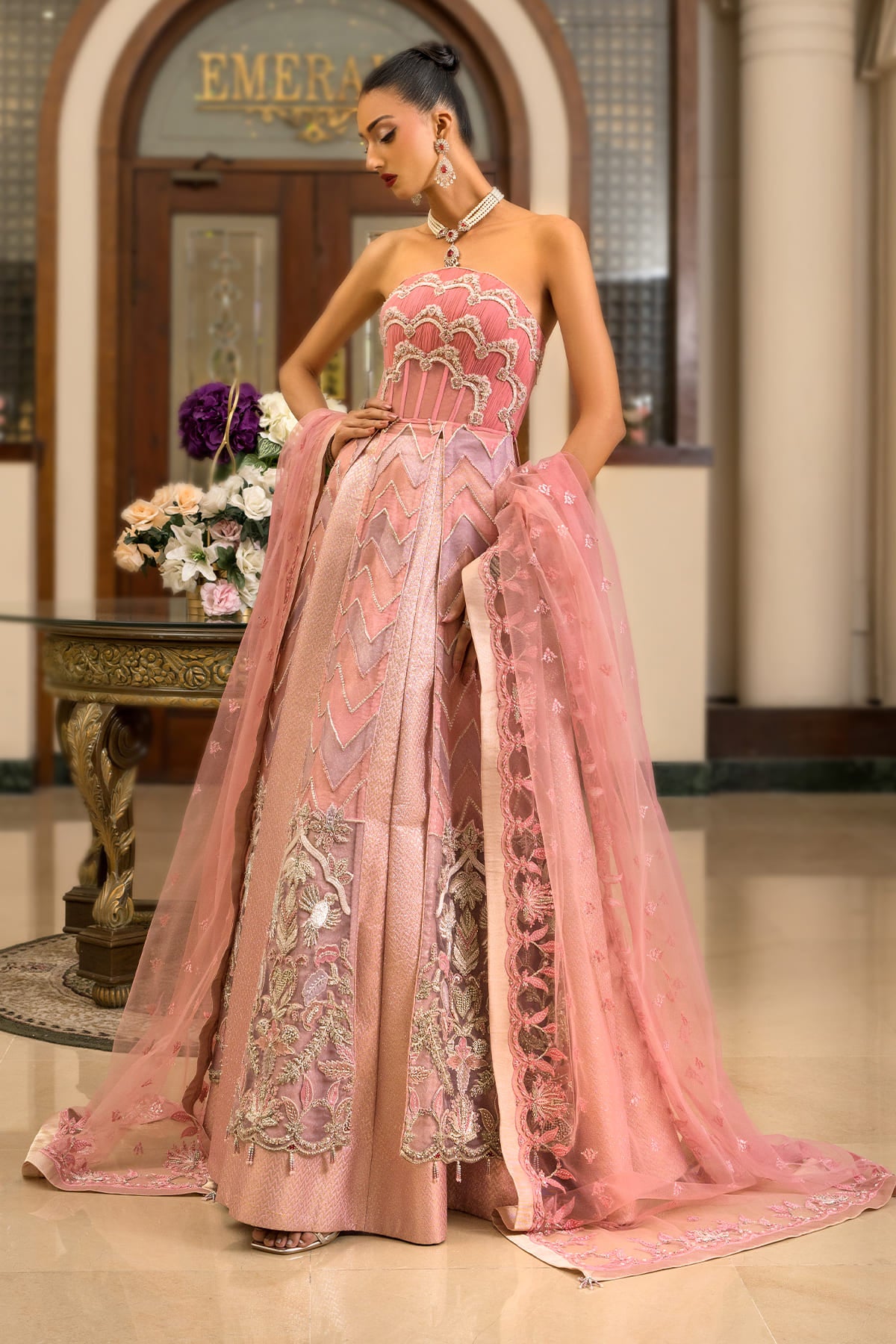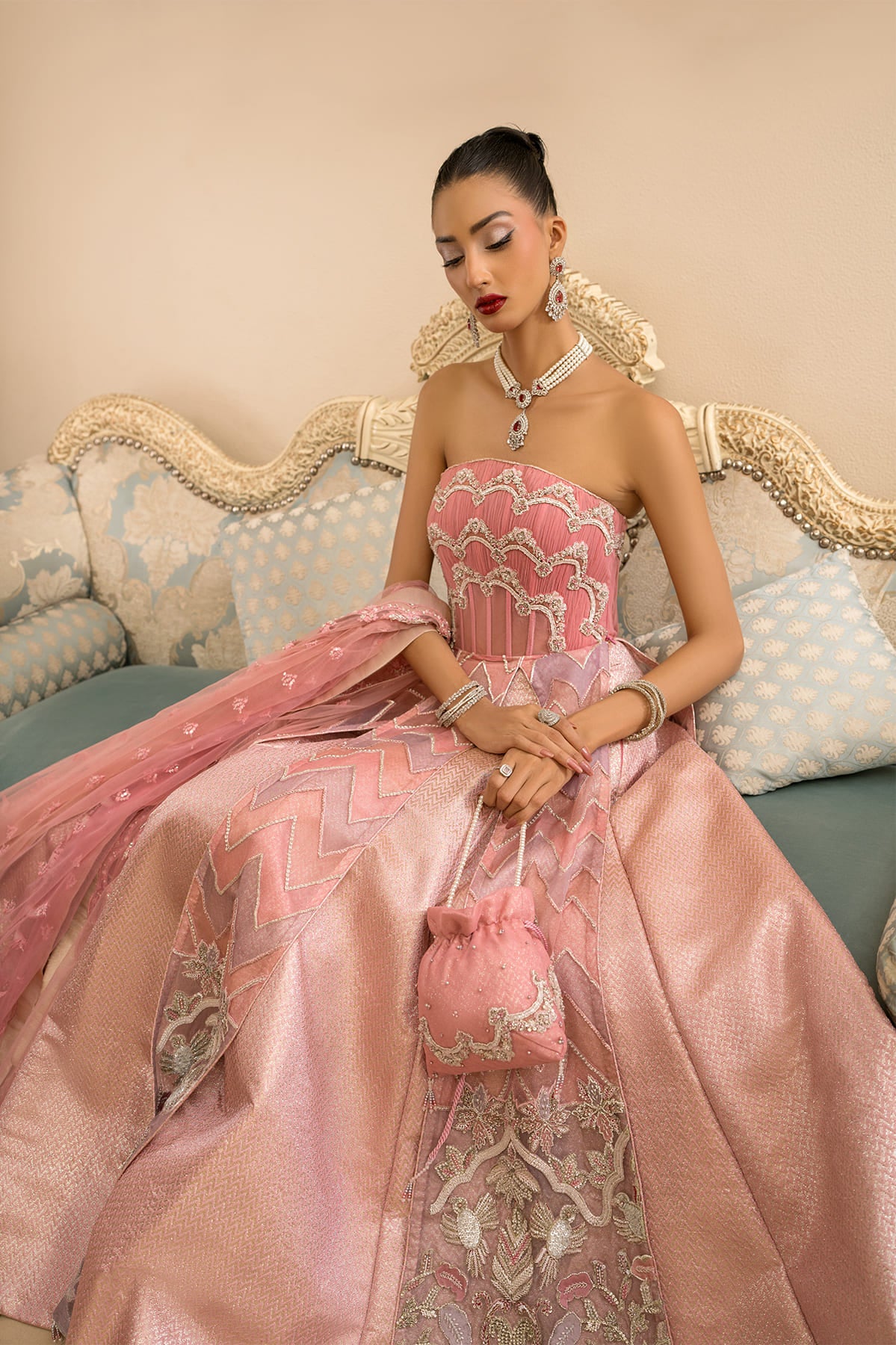 Neana — a twilight dream upon lavender fields. This gown whispers tales of elegance. Each thread, as glam dance across its surface. The jamawar pants, sways like leaves in summer breeze. The dupatta, a gossamer veil of net, drapes like mist over a quiet meadow. Its embellishments, a song of craftsmanship, echoing the passage of twilight into the dawn.